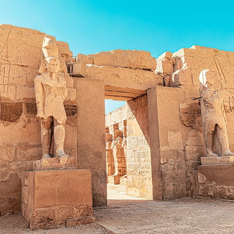 Après le petit déjeuner, partez à la découverte de la nécropole thébaine, majestueuse cité des morts où vous visiterez le temple de Medinet Habou édifié par Ramsès III au décor riche et coloré, les colosses de Memnon, vestiges grandioses du temple disparu d’Amenhotep III ainsi que la vallée des Reines, lieu de sépulture des épouses royales.